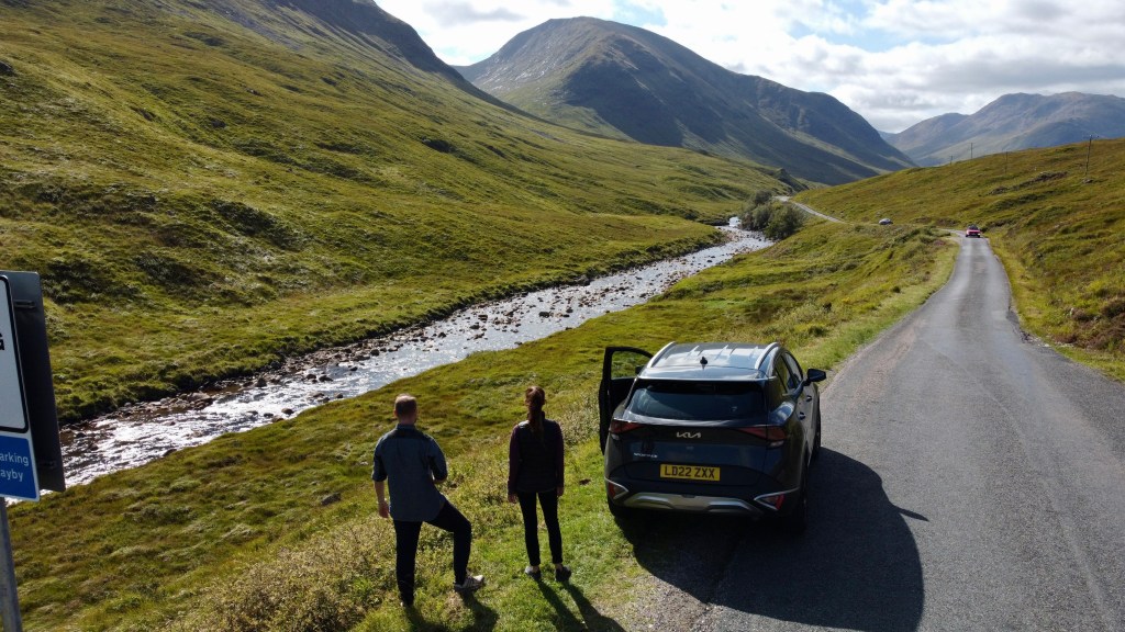 Akurat, gdy byłam w tej podróży po Szkocji, zmarła królowa Elżbieta, a trumna była w Edynburgu, wiele ulic było zamkniętych, wszędzie tłumy, więc zrezygnowaliśmy ze zwiedzenia tego miasta (tym razem). Jednak tak wszyło, że około 17, gdy byliśmy na lotnisku, było przejście trumny, parę metrów od nas, a lotnisko stanęło w miejscu na 2 minuty. Mieliśmy wrażenie, że nie możemy uciec od tego zgiełku…